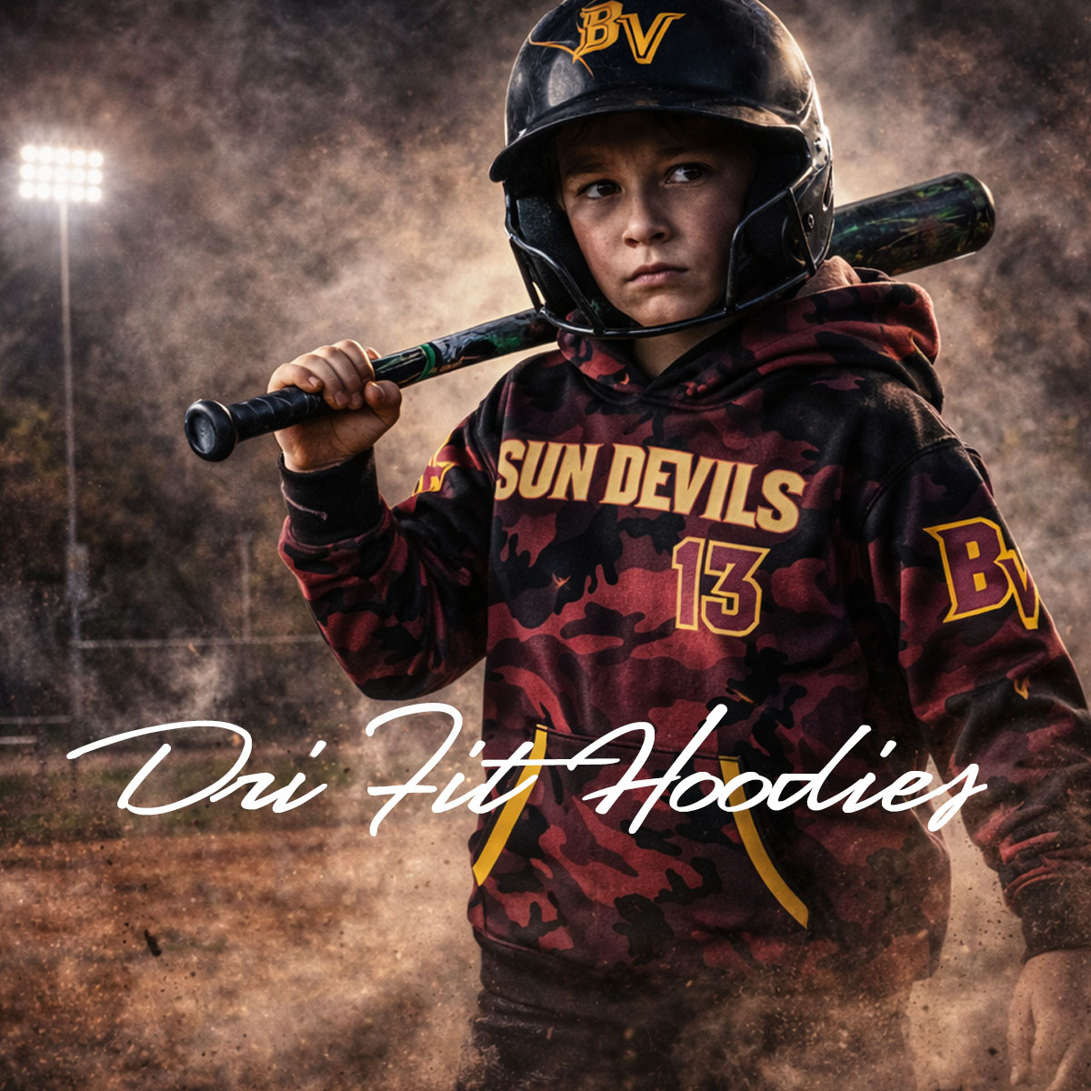Our specialty is full-color sublimation for team jerseys and dri-fit hoodies — perfect for players, coaches, and fan gear. This is not screen printing: designs are all-over, lightweight, and built to move.